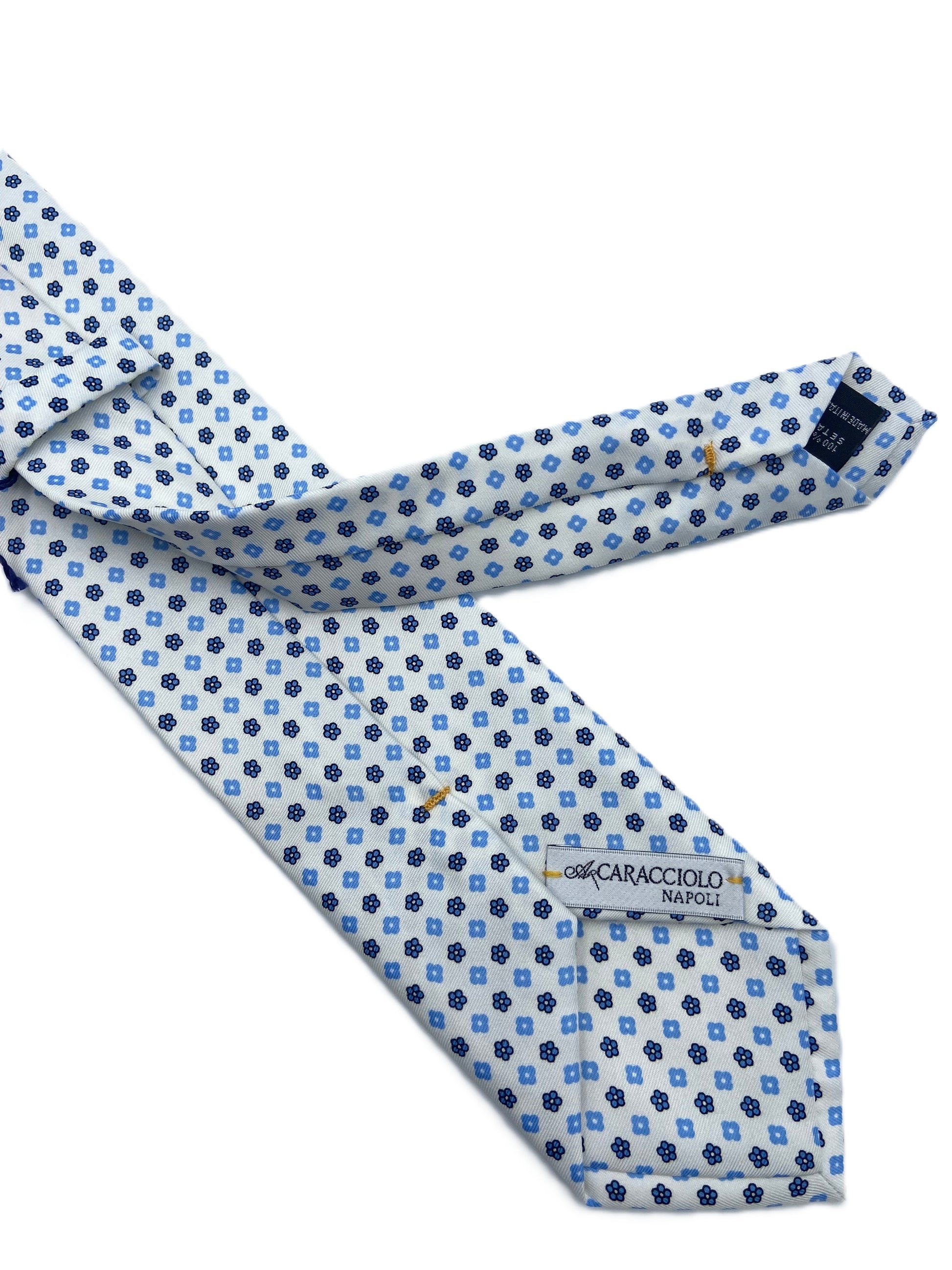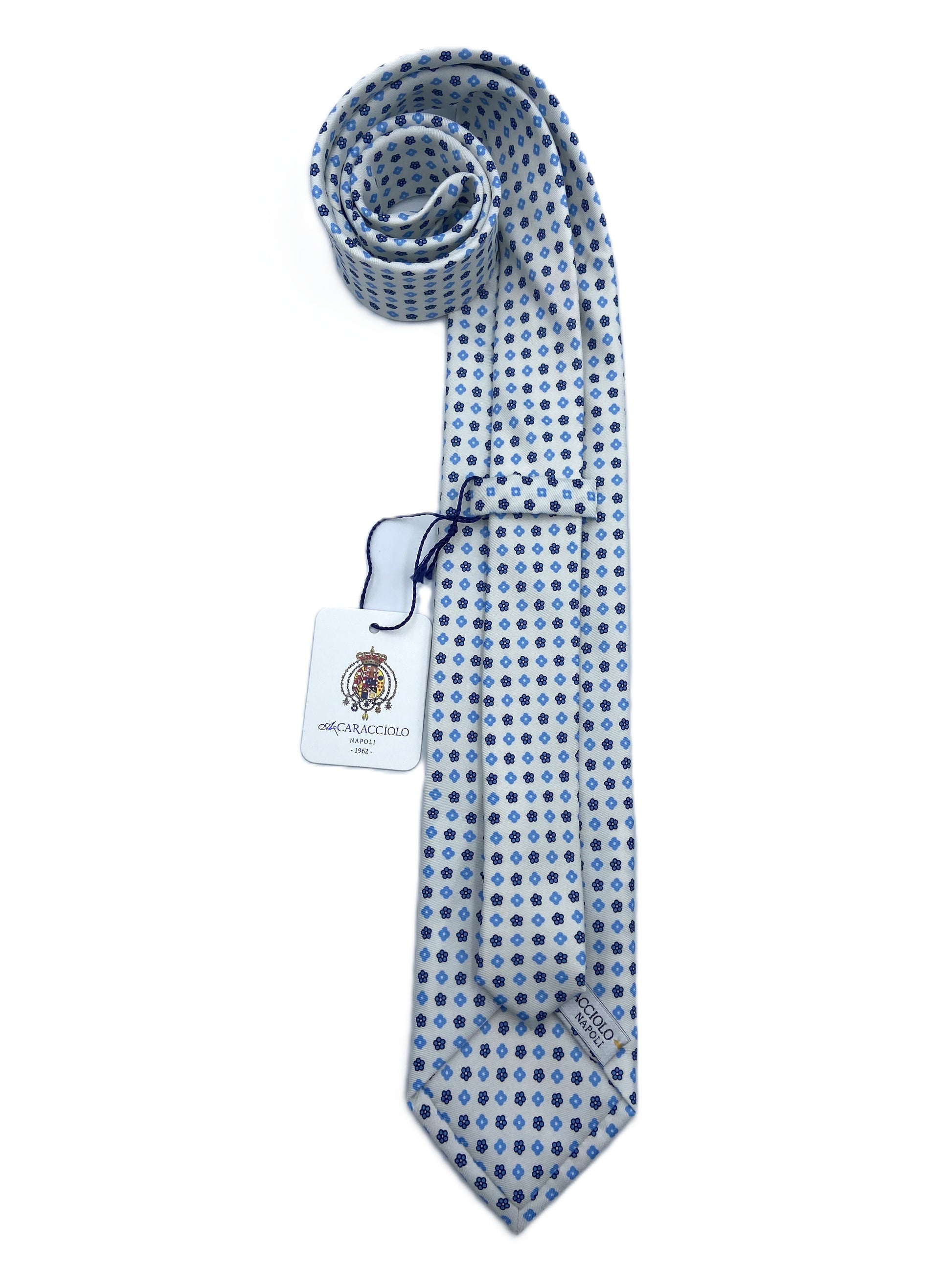 Questa cravatta elegante firmata A.Caracciolo, iconico marchio napoletano fondato nel 1962, rappresenta la perfetta sintesi tra tradizione sartoriale e stile contemporaneo. Realizzata in seta di alta qualità, è un accessorio raffinato pensato per distinguersi con discrezione.