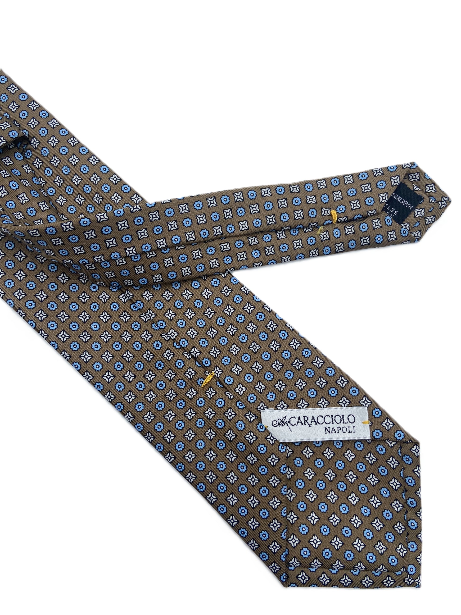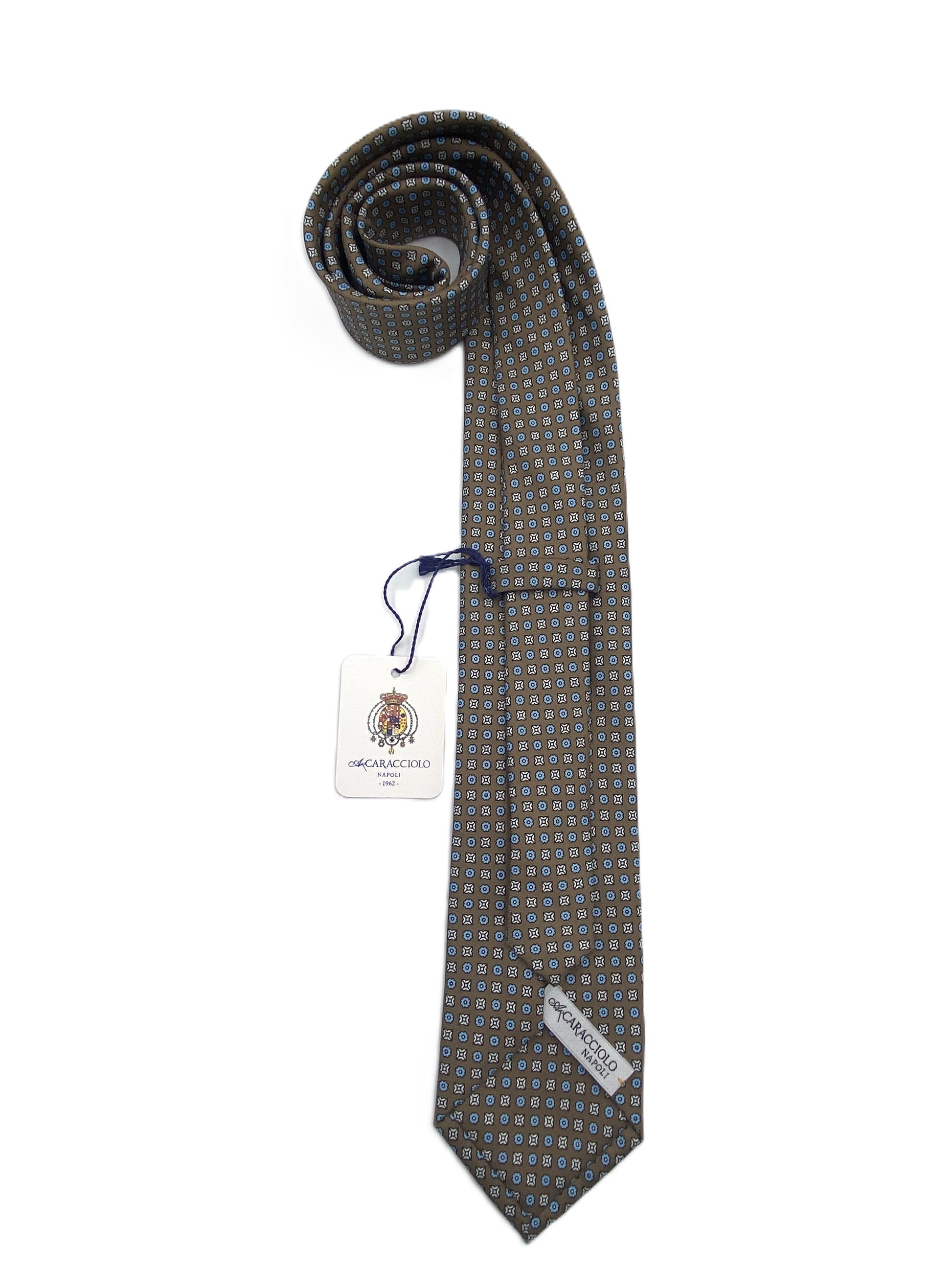 Questa cravatta elegante firmata A.Caracciolo, iconico marchio napoletano fondato nel 1962, rappresenta la perfetta sintesi tra tradizione sartoriale e stile contemporaneo. Realizzata in seta di alta qualità, è un accessorio raffinato pensato per distinguersi con discrezione.