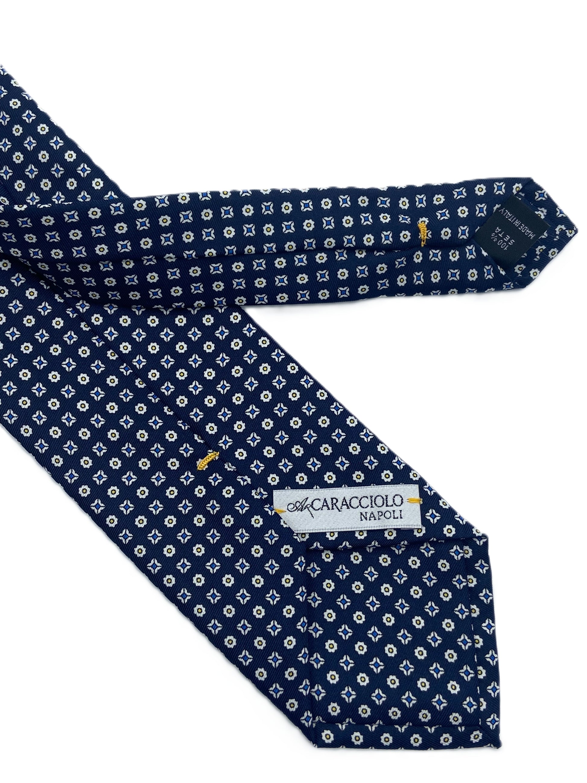 Questa cravatta elegante firmata A.Caracciolo, iconico marchio napoletano fondato nel 1962, rappresenta la perfetta sintesi tra tradizione sartoriale e stile contemporaneo. Realizzata in seta di alta qualità, è un accessorio raffinato pensato per distinguersi con discrezione.