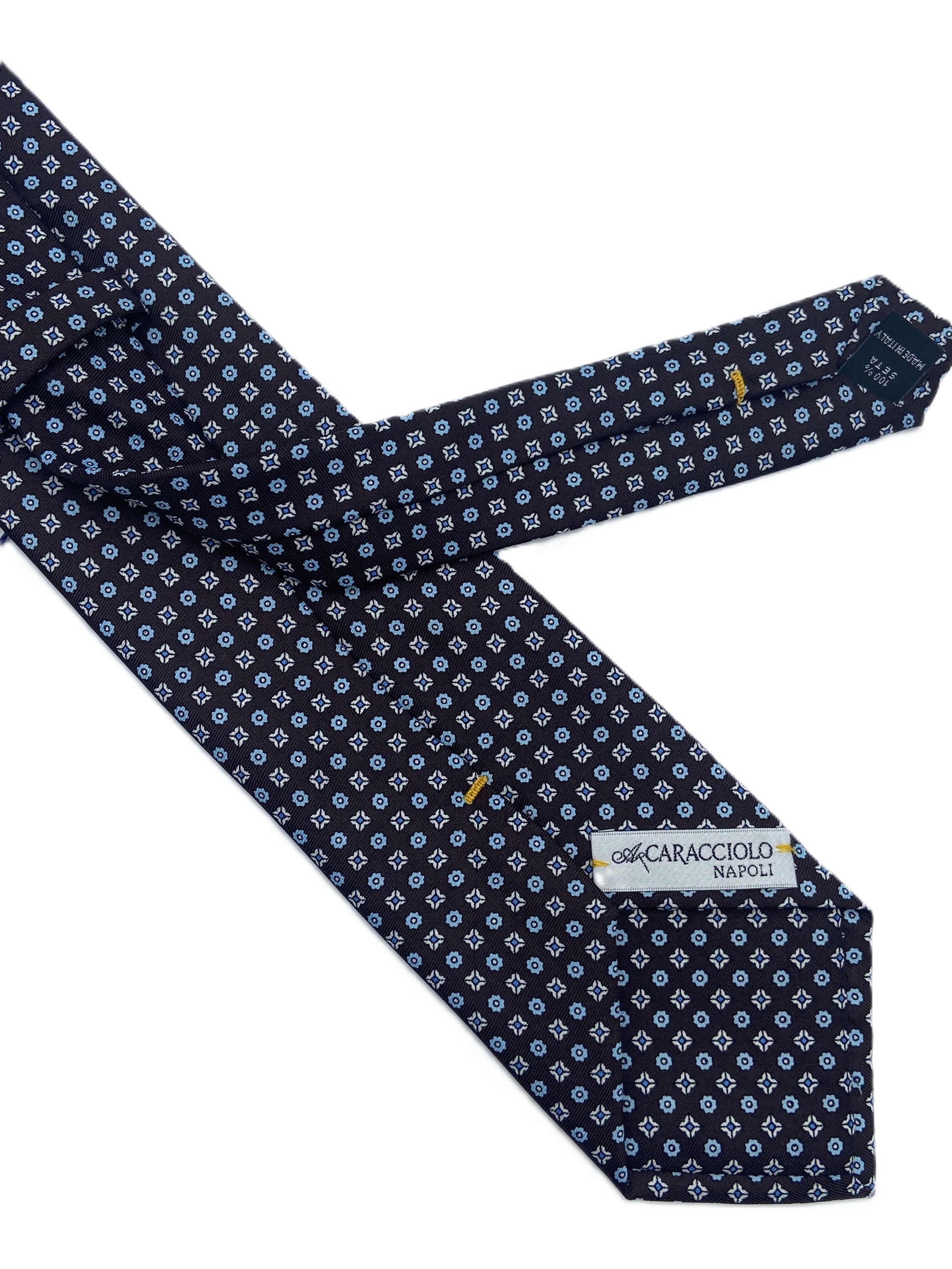 Questa cravatta elegante firmata A.Caracciolo, iconico marchio napoletano fondato nel 1962, rappresenta la perfetta sintesi tra tradizione sartoriale e stile contemporaneo. Realizzata in seta di alta qualità, è un accessorio raffinato pensato per distinguersi con discrezione.