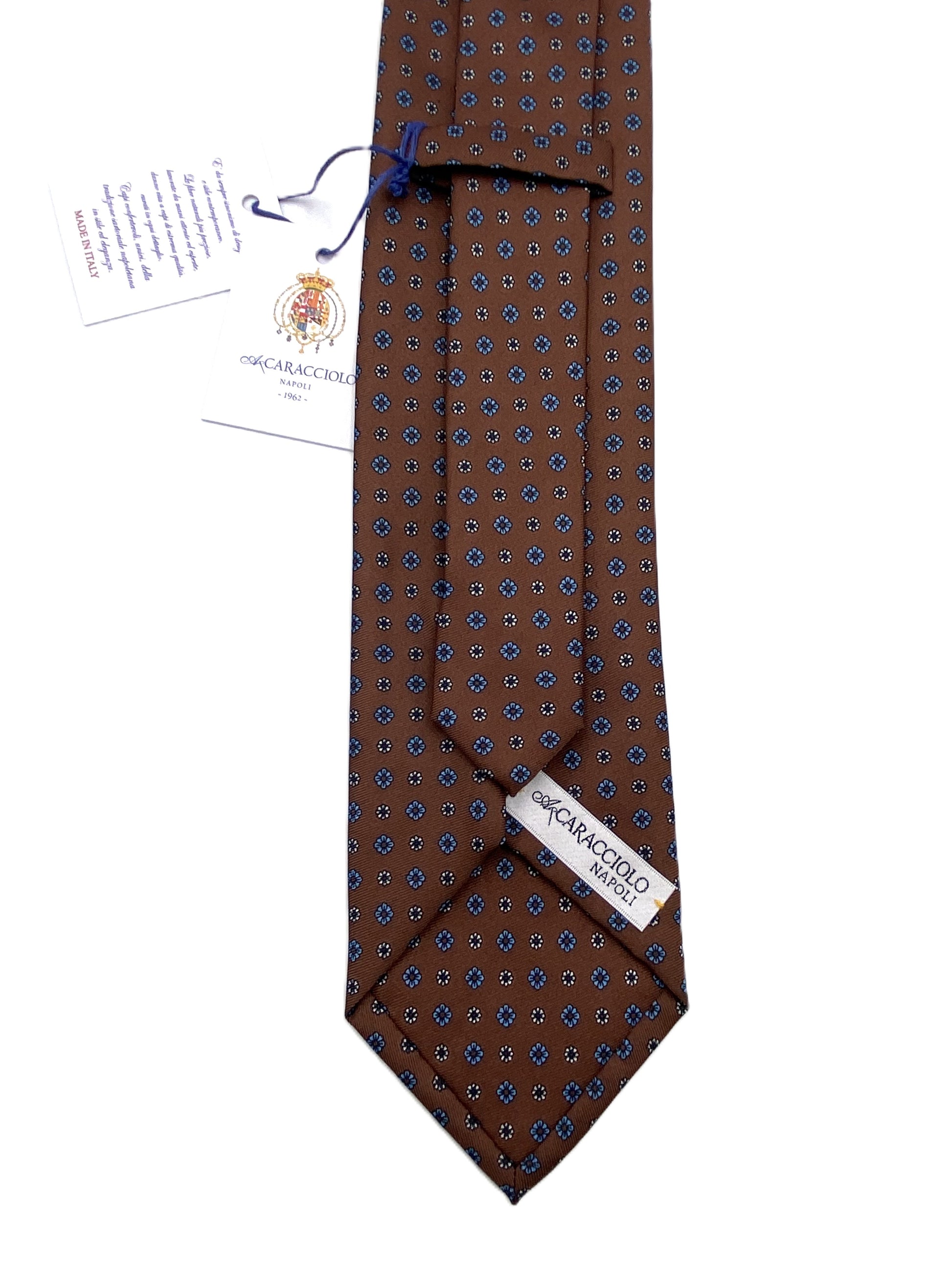 Questa cravatta elegante firmata Caracciolo, iconico marchio napoletano fondato nel 1962, rappresenta la perfetta sintesi tra tradizione sartoriale e stile contemporaneo. Realizzata in seta di alta qualità, è un accessorio raffinato pensato per distinguersi con discrezione.