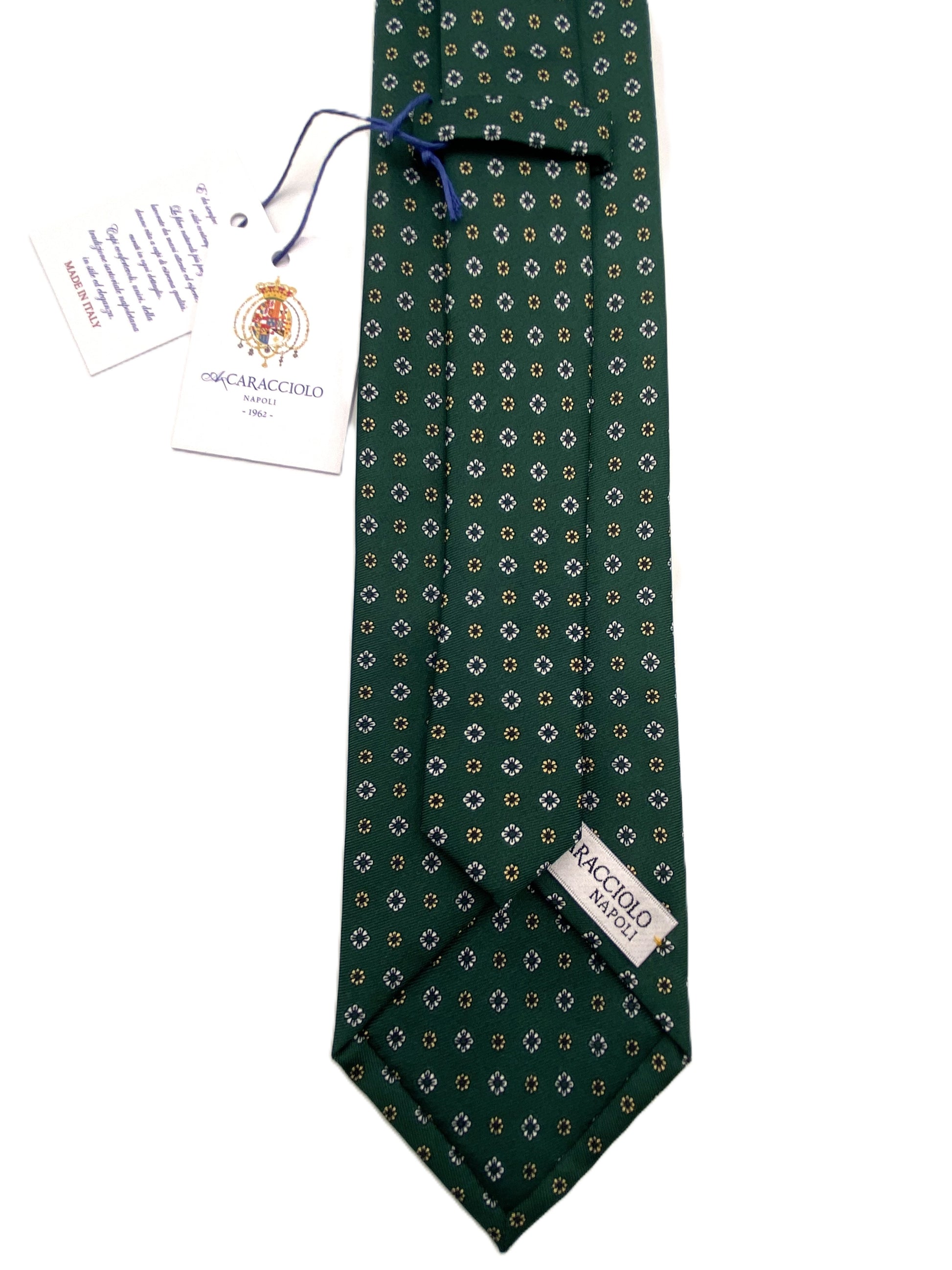Questa cravatta elegante firmata Caracciolo, iconico marchio napoletano fondato nel 1962, rappresenta la perfetta sintesi tra tradizione sartoriale e stile contemporaneo. Realizzata in seta di alta qualità, è un accessorio raffinato pensato per distinguersi con discrezione.